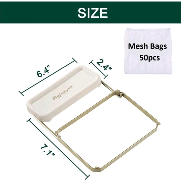 - High-Quality Materials - Made with durable iron and plastic, this sink trash catcher includes a robust mesh bag with a high load-bearing capacity. Each package contains 50 mesh bags.